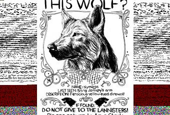 1 aprile: pesce. Lo sappiamo tutti, anche se non conosciamo l’origine della tradizione. Io ho scritto un articolo giornalistico – più o meno, in alcuni punti lo stile è quello di un cronista – per FantasyMagazine. Di cosa potevo parlare? Ma delle Cronache del ghiaccio e del fuoco, ovviamente, e dell’efferato omicidio compiuto da un non meglio specificato animale feroce nei pressi di Grande Inverno. I testimoni, pur se desiderosi di collaborare e interessati a far sì che in futuro non si verifichino più tragedie di questo tipo, non sono riusciti a fornire nulla più che vaghi indizi e fumose allusioni. E intanto che le indagini proseguono – anche se George R.R. Martin si dimostra reticente e non vuole rivelare nulla su cosa sia effettivamente avvenuto alla fine di A Dance with Dragons, un altro fatto terribile si è verificato. Ne dà conto il manifesto pubblicato in questa pagina, che spiega come non sia più tempo per i lupi.