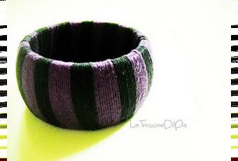 La base è un bracciale di legno che Martina riveste con fili colorati.