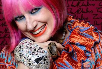 È una zona di Londra che non conosco affatto, nascosta com’è dietro la stazione ferroviaria di London Bridge ed ero così impegnata guardarmi attorno che quasi l’ho mancato il Fashion and Textile Museum. Non che l’edificio sia incospicuo, sia ben chiaro. Voluto dalla stilista Zandra Rodhes e progettato dall’archtetto messicano Ricardo Legorreta, è dipinto di un bell’arancione brillante che si alterna ad un rosa elettrico come che si accorda al colore dei capelli della signora in questione.