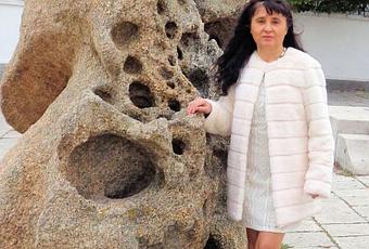 Una rara filosofa sarda accanto ad un lavoro di Nivola, Nuoro, pochi giorni fa. Sic.