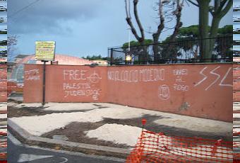 Alcune frasi ingiuriavano la religione ebraica, con espliciti simboli e riferimenti neonazisti; un'altra, della stessa mano, recitava "No al calcio moderno", con riferimenti dunque alle curve dello stadio e alle tifoserie di Roma e Lazio. Un elemento che, fa sapere il municipio XVIII, probabilmente, rimanda l'episodio all'assalto al pub di Campo de' Fiori.