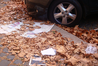 Ormai non ci si fa più caso. Siamo talmente tanto abituati a questo schifo che oramai ci passa davanti agli occhi senza che nemmeno ce ne accorgiamo. La nostra mente è abituata a considerare questo schifo come la normalità. Chiediamoci però che effetto fa, a un cittadino di un paese civile, osservare con i propri occhi vergini al degrado questa immagine. Foglie secche si mischiano a volantini caduti, in un vergognoso "minestrone" di degrado. Chiediamoci cosa stiano facendo gli operatori dell'AMA in queste settimane, anziché pulire le strade. Qui siamo a ridosso delle Mura Aureliane. In una traversa di Viale Trastevere.