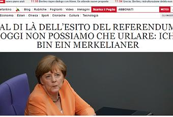 "Ich bin ein merkelianer" - titola il Foglio oggi, dopo il referendum greco, e accusa Tsipras di assistenzialismo.