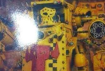 Come annunciava già il White Dwarf #17, la prossima settimana inizieranno ad uscire gli Orki. Molto probabilmente non vedremo il Codex nella prima settimana, ma ci sarà il Gorkanaut. L'immagine è abbastanza sfocata e si capisce comunque poco su come sia fatto il modello dietro quella piastra.