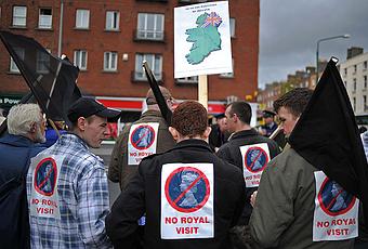 La povera (??) Elisabetta si é dovuta trovare a fronteggiare inevitabili sorprese sgradite: una bomba piazzata da dissidenti repubblicani é stata trovata su di un autobus un giorno prima della sua visita, manifestazioni di protesta non sono mancate, ed in generale non é che gli Irlandesi apprezzino molto i monarchi, specialmente quelli rossi e blu.