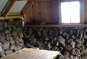 A quello che potremmo definire orizzonte si scorgono fumi di zolfo che salgono al cielo per nascondersi tra le nuvole. Fa freddo. Ci saranno 2 gradi.Non pensiamo a nulla se non a scappare nel primo edificio che vediamo, un piccolo rifugio che vende tazze di the e caffè caldo. Dovremmo montare la tenda, ma un po' per caso ci troviamo a chiedere se c'è posto nel dormitorio in legno dall'altra parte del parcheggio. Fa freddo. Avrei voglia di dormire in tenda sulla riva di questo fiume tiepido che riceve acqua anche dal centro della terra, ma tiriamo un sospiro di sollievo quando ci rispondono che ci sono due brande.Fa freddo. Dopo esserci assestati ci ritroviamo con le gambe sotto il tavolo in un ristorante esclusivo sulla cima della collinetta di fronte: una vecchia chiesa abbandonata con mura spesse due metri, il tetto ricoperto di muschio e un grosso tavolone in legno che qualcuno ha lasciato qui. Pane, crema di caviale (una specie di pomata oleosa comprata qualche giorno fa che ci sta salvando la vita), una scatoletta di tonno e siamo ancora in pista. Fa freddo. Sfidando il rischio maltempo seguiamo il sentiero tracciato con dei paletti rossi incastrati tra le rocce. Intorno abbiamo un deserto di rocce laviche puntellate da muschi fluorescenti e qualche fiorellino viola che non riesce a non apparire fuori posto. Fa freddo. Piccoli crateri di pietra sembrano esplodere dal terreno come brufoli, mentre le immancabili pecore brucano sornione, alzando la testa solo quando si invade il loro spazio vitale.Non serve girare la testa in tutte le direzioni, il nulla non ha punti di riferimento. Fa freddo. Se non fosse per questo minuscolo sentiero sapremmo a malapena dire da che parte si trova il rifugio.