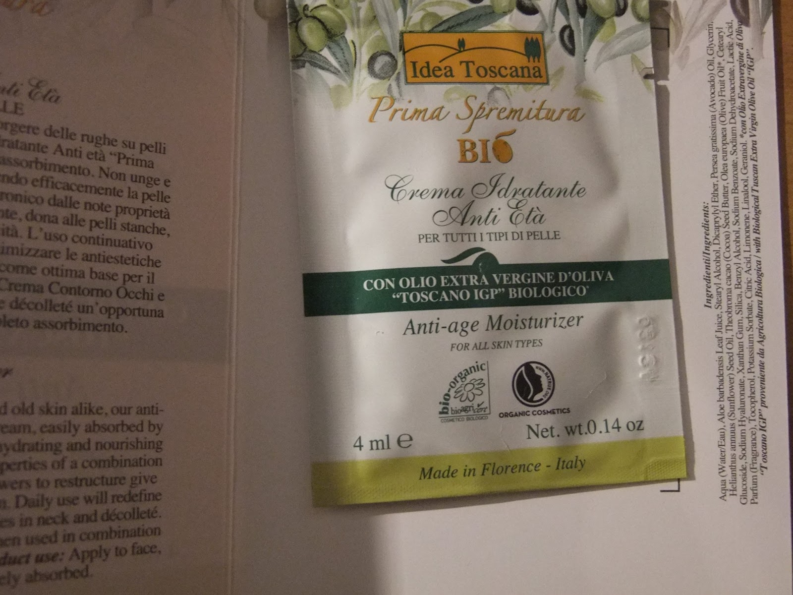 Ciò che mi colpisce in maniera particolare è il profumo che si sprigiona dai singoli prodotti, all’inizio l’essenza può sembrare pungente, ma dopo pochi secondi diviene piacevole e leggermente speziata, ciò è dovuto al fatto che Idea Toscana non usa profumi industriali o sintetici, ma solamente pregiati oli essenziali naturali. Non finisce qui, infatti questa azienda ha da poco lanciato sul mercato la linea “Prima Spremitura Bio Linea Viso” con il 95% di materie prime naturali, certificate biologicamente e soprattutto senza la presenza di OGM.