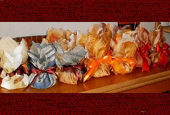 I tessuti sono meravigliosi e già tagliati a quadrati di 30x30cm, io ne ho preparati 24 e credo che li confezionerò tre alla volta in una scatola natalizia, per adesso li ho messi in una busta di plastica che ho sigillato con lo scotch, non vorrei che si perdesse il profumo :)Ciao!!! Alla prossima...