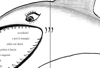 Della tradizione dei bestiari immaginari, McGough conserva e applica la “mescolanza”, l’ibridazione, sfruttando con arguzia i nomi composti in quel processo creativo cui accennavo per cui un elemento complesso, composito appunto, diviene semplice e autonomo, assumendo un significato nuovo e bislacco, stravagante e surreale. Il primo animale immaginario è l’allivator (nato dal gioco che fonde un alligator/alligatore con un escalator/scala mobile) che, per mezzo di una poesia “concreta”, un calligramma, in cui le parole sono disposte sulla pagina a formare un disegno rappresentativo di ciò di cui si parla (di carrolliana memoria, penso a The Mouse’s Tale…), in italiano si trasforma e traduce in una divertente Squala Mobile, la cui illustrazione è stata creata su misura proprio da McGough che ha realizzato tutte le illustrazioni necessarie a completare il lavoro di traduzione quando essa non coincideva con l’originale.