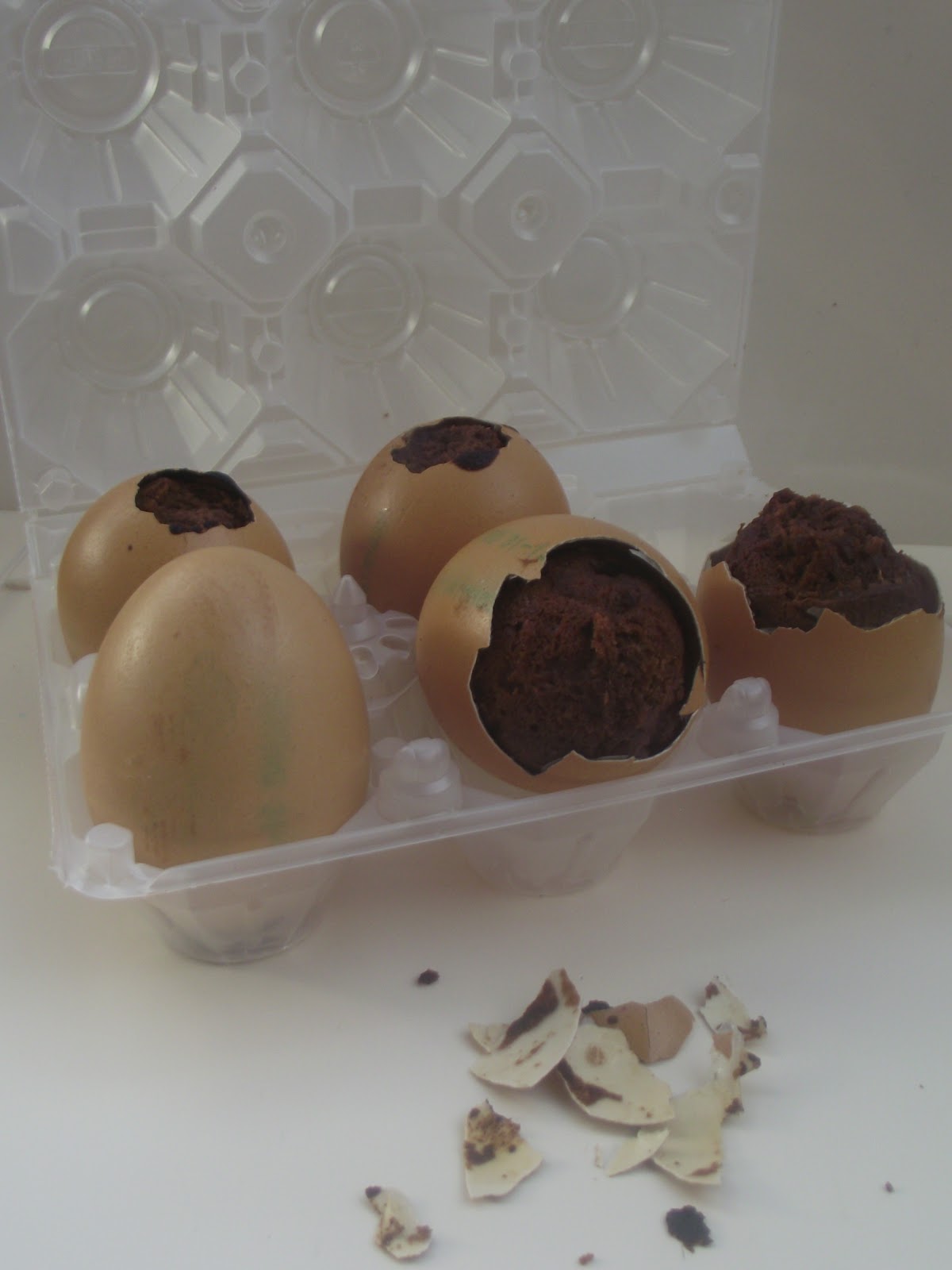 Questa è una ricetta incontrata per strada nel mondo dei blog spagnoli.Vederla e pensare alla metafora della vita è stata un tutt'uno.Dentro l'uovo c'è un semplicissimo brownie.Delizioso ed equilibrato.