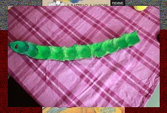 Incolliamo la testolina del nostro bruco al lunghissimo corpo che abbiamo realizzato: