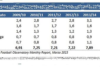 Rispetto alla situazione di partenza non è cambiato l'ordine assoluto delle competizioni, mentre si è modificato in forma importante il peso di ciascuna di queste. Serie A e Liga hanno fatto registrare un tasso di crescita sostanzialmente piatto fra il 2009/10 e la stagione in corso, mentre invece le altre tre competizioni sono cresciute in maniera sensibile.