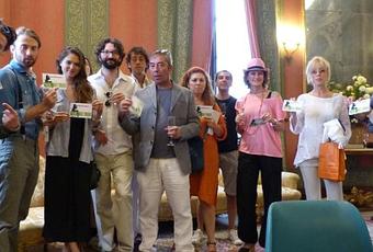 Il cast de La bisbetica domata testimone di accessibilità per dismappa dopo la conferenza stampa in Sala Arazzi.