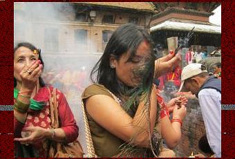 L`Induismo nepalese non è bigotto e, poi, nelle feste e i muri di abitudini e cultura tra uomini e donne diventano se non totalmente insormontabili sono, almeno, piu` facilmente aggirabili. Certo, Krishna e` Dio dell`Amore Cosmico e per questo molti sono i proseliti anche nel Mondo Occidentale. Basta ricordare le comunita` hippies d`antan, le varie sette a carattere indianeggiante , la stessa musica utilizzata dai mostri sacri del rock. Siamo negli anni '60 e '70, atmosfere in parte perdute, create dalla melodia dei sitar, dal fascino della meditazione e dei Guru, rafforzate da qualche canna. Ma oggi, qui nella Piazza si vive il presente come negli altri piccoli templi meno famosi, gremiti di folla, sparsi nella Valle.