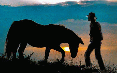 Gli indiani gli portano il cavallo. Il cowboy si avvicina all'orecchio, bisbiglia qualcosa, quindi gli da una pacca sul posteriore.