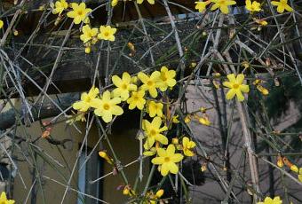 Martedì 8 Gennaio, armata di cesoie, faccio un giro in giardino per vedere di cogliere qualcosa.Una macchia gialla richiama la mia attenzione. Sono rami fioriti di Jasminum nudiflorum detto anche Gelsomino di San Giuseppe. A dire il vero, già a a Dicembre, qualche fiore giallino mi strizzava l’occhio dal trave dove è appoggiato.