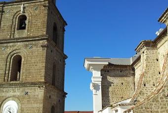 L’attuale facciata in stile barocco si deve ad alcuni interventi di restauro eseguiti all’inizio del Settecento per porre rimedio ai danni subiti dalla struttura durante i terremoti del 1694 e 1702 che, sfortunatamente, distrussero gran parte dell’edificio. La facciata si divide orizzontalmente in una parte inferiore e in una superiore mentre, in verticale, risulta evidente una tripartizione eseguita per mezzo di gigantesche lesene di ordine corinzio.