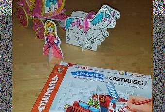 I giochi Immagicart sono dei kit costituiti da pezzi di carta che si possono colorare ed assemblare, dando vita ai personaggi preferiti di ogni bambino: la principessa in carrozza, il camion dei pompieri, l’elicottero e tanti altri.L’idea di questi nuovi giochi è nata dalle menti e dall'impegno di due cartotecnici italiani appassionati di creatività, manualità ed ecosostenibilitàPer prima cosa io e Miss Energy ci siamo cimentate nella realizzazione della principessa e della sua carrozza. È stato estremamente rilassante colorare tutti i pezzi del gioco. Abbiamo utilizzato i tre pennarelli a punta fine compresi nel kit ma anche altri pennarelli e matite colorate che avevamo in casa. Infatti la carta di cui sono composti i giochi assorbe facilmente ogni tipo di colore. Temevo che, usando i pennarelli, mia figlia si potesse macchiare i vestiti invece il colore ha attecchito subito alla carta senza sbavature.