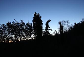Stamani, all'alba, il cielo era terso, e una sottilissima lama di luna, in compagnia di una brillantissima stella che le stava vicino, saliva sopra le chiome spoglie degli alberi del bosco.