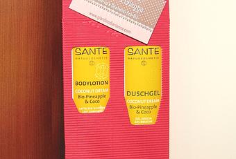 I prodotti della gift box sono due referenze Sante Naturkosmetik, azienda cosmetica le cui produzioni godono di certificazione BDIH a garanzia dell’effettiva naturalità e biologicità delle composizioni. Prive di allergeni ed altre sostanze dannose per la pelle e l’ambiente, cruelty-free ed assolutamente adatte anche alle pelli più sensibili, le formulazioni Sante Naturkosmetik sono famose in tutta Europa per la loro efficacia e naturalità.