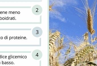 Il grano kamut è valutato come un ottimo cereale in assoluto, dal punto di vista nutrizionale, ha una cospicua quantità proteica pari al 30% superiore rispetto al frumento comune, ricco di vitamine in particolare la vitamina E, di minerali (magnesio, zinco, selenio, fosforo e calcio), di aminoacidi "molecole organiche che si uniscono per formare le proteine" (il 65% di più in confronto al frumento) è l'alimento perfetto per anticipare le malattie causate da ossidazione cellulare (unione di una sostanza con l'ossigeno). Si digerisce con facilità, il kamut è consigliato per tutti coloro che hanno lo "stomaco delicato,"oppure soffrono di gastrite. E' un ottimo disintossicante, aiuta ad anticipare l'artrite (infiammazione delle articolazioni corporee) è un depuratore, grazie all'azione simultanea di fibre, crusca, vitamine e sali minerali, il kamut favorisce l'intestino e l'eliminazione delle scorie. Ha effetti benefici sullo stomaco, non forma fermentazioni perché è leggero e facile da digerire, l'unione tra la vitamina E e il selenio facilità la trasformazione cellulare e riduce i processi d'invecchiamento. Per concludere, nel kamut sono presenti alcune vitamine del gruppo B: la B1 (tiamina), la B2 (riboflavina) e la B6 (piridossina).Potrebbero interessarti anche :
