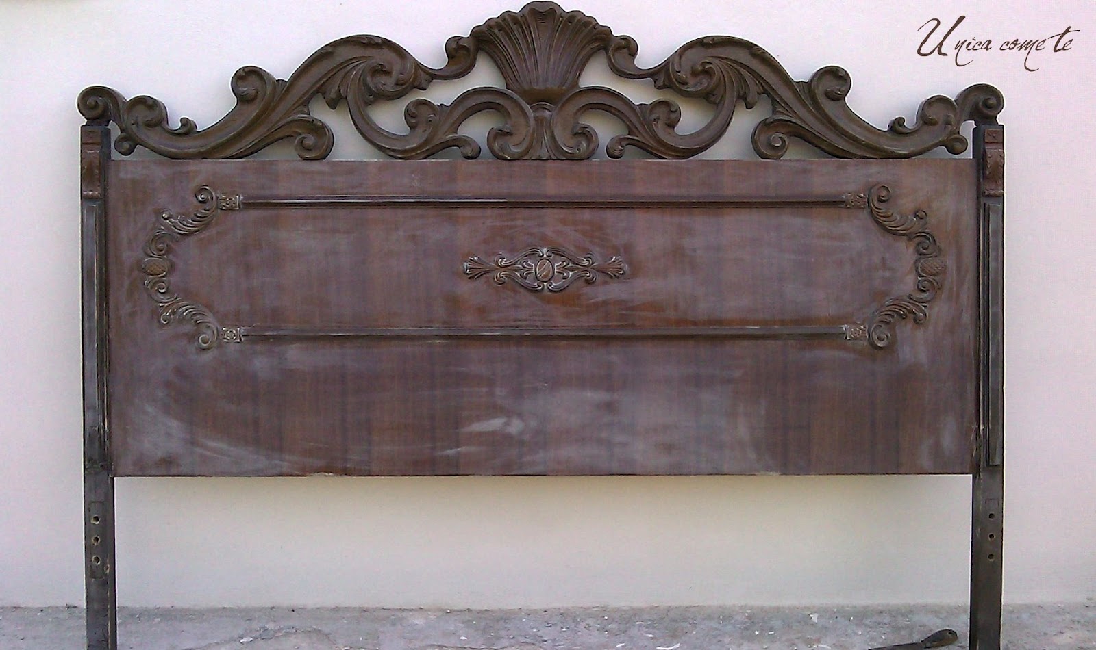 Uno zio di Pietro(mio marito) ci ha regalato un vecchio letto matrimoniale degli anni '70, in un primo momento sono rimasta scioccata dal suo aspetto, diciamolo: " Era proprio brutto."Poi ci ho pensato un po' su e mi son detta "Adesso lo trasformo, diventerà irriconoscibile!"