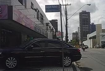 Avenida Antônio Sales angolo con la rua Joaquim Nabuco. Autovettura tranquillamente parcheggiata sul marciapiede, mentre il pedone è obbligato ad invadere la carreggiata di marcia, ponendo in grave pericolo la sua incolumità, transitando nella pericolosa Avenida.