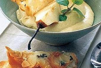 Ingredienti: per 6 persone 2 fogli di gelatina 800 g di pere sciroppate 3 tuorli 70 g di zucchero 3 rametti di menta 2 dl di panna montata 1 pera coscia per decorare La pera coscia è una varietà del pero nota anche con il nome popolare di coscia di monaca. È una c...