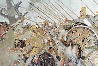 Circa un milione e mezzo di minuscole piastrelle policrome, disposte secondo la tecnica dell‘opus vermiculatum, contribuiscono a riprodurre una delle più famose battaglie di Alessandro Magno. Sebbene qualcuno, all’inizio, avesse ipotizzato che il mosaico potesse raffigurare una scena della battaglia di Gaugamela del 331 a.C., studi approfonditi avrebbero accertato che si tratta in realtà della precedente battaglia di Isso, datata al 333 a.C.