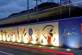 Venne inaugurato nel 2006, ed è il lavoro più grande mai progettato da Enrico Baj. Circa cento metri di lunghezza per tre di altezza.È il Muro di Pontedera, un muro interamente dipinto, progettato dal grande artista, inaugurato come opera postuma, in seguito alla scomparsa dell’artista avvenuta nel 2003.