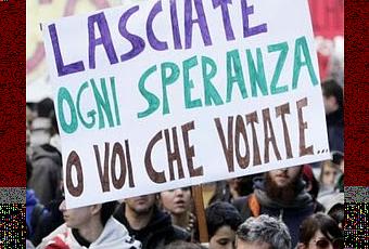 Coalizioni, alleanze, inciuci, maggioranze incestuose per racimolare quei numeri necessari a governare comuni, province, regioni, nazione. Ma in Italia c'è un partito di maggioranza assoluta pronto a governare: il partito del non voto! Di fatto l'Astensionismo è il primo partito italiano. La gente per bene diserta le urne per stigmatizzare tutto il suo disprezzo per una casta che non è più sostenibile! Occorre tenerlo presente anche quando legittimamente si festeggia la vittoria del proprio schieramento e dei propri eletti. Quando più della metà degli aventi diritto, diserta le urne, senza considerare le schede nulle e quelle bianche, è sintomo di un malessere generale, di un disagio diffuso e di una protesta che le forze politiche farebbero bene ad affrontare con serietà. E’ pesante rinunciare ad un proprio sacrosanto diritto, quale il voto, specie in una società che sta smarrendo il senso del diritto, nel nome del profitto e del libero mercato. Ma a volte, come atto estremo, è oltremodo “doveroso” rinunciare ad un diritto sacrosanto come “il voto”, soprattutto quando votare ha lo stesso sapore di quell’ora d’aria che si concede ai carcerati prima di tornare dietro le sbarre. Voti tizio. Voti caio. Voti sempronio. Ma, poi, tutto torna come prima, peggio di prima! Non cambia mai niente! Non accade mai nulla di nuovo in questo Paese! E’ molto più probabile che vi accada qualche disgrazia mentre andate al seggio, piuttosto che il vostro singolo voto conti qualcosa e determini dei cambiamenti. Oggi come oggi il vero voto inutile è il voto stesso! Allora astenersi val più che votare “il meno peggio” turandosi il naso! Il non voto è il figlio legittimo dell’ideologia che non c’è più, dell’ideologia tradita dai partiti politici e asservita ai mercati, dell’ideologia che ha abdicato al potere economico della finanza globale. Non è assolutamente qualunquismo, perché non è vero che “loro” sono tutti uguali. Ci sono politici per bene, la cui colpa, grave, gravissima, imperdonabile, è stata quella di aver soccombuto ai corrotti e ai disonesti! Il non voto è pertanto scontro, rivoluzione, lotta di classe, che contrappone “chi lavora” a “loro”, i lampioni senza olio, i mangia pane a tradimento di una politica che nulla fa per il bene comune, ma che sta lì solo per sistemare i propri affari. Il non voto contrappone chi è costretto a pagare le tasse e chi le tasse le evade o le elude. Il non voto è la linea di confine tra chi porta avanti coscienziosamente la propria attività e chi no. Il non voto è una forma di delegittimazione della casta, è il segnale forte e democratico dell’acuirsi dello scontro fra la classe politica e la maggioranza della popolazione, fra coloro che occupano le stanze dei bottoni e la gente per bene che ormai sa che da “loro” non può aspettarsi niente di buono e che per risolvere i suoi problemi deve arrangiarsi da sola! E’ soprattutto per una questione di dignità e di rispetto, per se stessi e per gli altri, che si disertano le urne. La gente per bene non cessa di essere spremuta solo perché gli si permette di votare chi la spremerà ogni “tot” anni. Astenersi significa dare un segnale forte in tal senso. Astenersi è la moderna, pacifica, democratica rivoluzione!