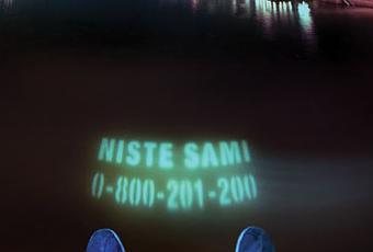 Beh, partiamo dall’inizio: 40 persone all’anno si suicidano buttandosi dai ponti di Belgrade. L’arduo compito dei creativi era quello di marginare questo tragico trend, hanno quindi pensato di proiettare la scritta “non sei solo” nell’acqua sottostante. La scritta – visibile solo dal ponte se si guarda in basso – riporta ed invita a comporre il numero telefonico di assistenza sociale per evitare drammatici gesti.
