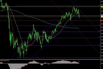 La situazione sul Dax non è per ora ancora compromessa, ma un cedimento sulla linea tratteggiata rossa sarà il primo campanello di allarme, viceversa un ritorno sulle line gialle potrebbe proseguire per la via dei rialzi.