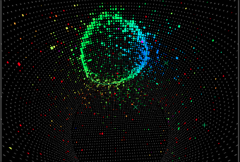 Una ricostruzione al computer dell’azione di un neutrino. Crediti: T2K