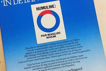 Sul fronte del disco si legge “In de Ban van de Ring” (titolo olandese Il Signore degli Anelli) e sotto “Humuline: Puur menselijke insuline” (tr. Humulin: Insulina umana pura).A seguire, la motivazione sulla scelta dell’opera di Tolkien: