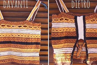 Ho aggiunto un inserto sul retro, nella parte alta, per raggiungere la misura giusta. Nella parte bassa invece ho lavorato due laccetti da annodare per tenere vicine le due "ali"... a proposito di ali... il retro, guardando la foto in alto, non sembra un po' una farfalla? A me sì.