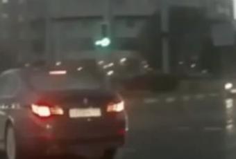 La macchina, la BMW che si appresta a registrare il video è ferma con il rosso in prossimità di un semaforo in una fredda giornata di inverno in una città della Russia. La telecamera dell’autovettura costantemente attiva, registra il passaggio di un’auto, che pochi istanti prima, non è presente nell’ incrocio.