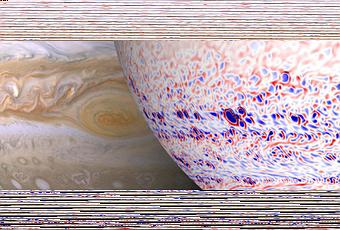 Il gigante gassoso è dotato di un’atmosfera davvero turbolenta: pensate che venti da est e da ovest trasportano nubi dense di ammoniaca ghiacciata a una velocità di ben 550 chilometri orari. Come detto la rotazione dei vortici su Giove è particolare: in senso orario a nord e in senso antiorario nell’emisfero sud. Johannes Wicht del MPS ha spiegato: «La nostra simulazione ad alta risoluzione dimostra che l’interazione tra i movimenti nel profondo del pianeta e lo strato stabile esterno è cruciale».