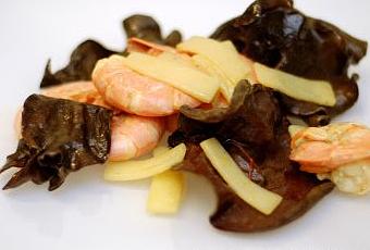 Non lo posso nascondere, sono da moltissimo tempo attratto dalla cucina orientale, H.P. Lovecraft direbbe da moltissimi eoni; ricordo ad esempio ancora la prima volta che andai a mangiare al ristorante cinese, era la sera del 26 dicembre del 1989 oppure pochi anni dopo quando ci si andava nella pausa pranzo dell'università. Gli anni e gli eoni son passati, ho girato e viaggiato per il mondo, per lavoro o per diletto, in compagnia o solitaria, ho così conosciuto, apprezzato e imparato altre tipi di cucine orientali, qualcosa ho anche provato a postare in passato come queste ricette ad esempio: ravioli di gambero al vapore, polpa di pollo tikka masala o i gamberi speziati alla vietnamita, cosè quando per l'ultima trasferta milanese il buon Sergente Pepe mi ha consigliato alcuni negozi interessanti non mi son lasciato sfuggire quello di ingredienti orientali, inutile dire che alla fine ne son uscito con una bella sacchettata di ingredienti vari; finalmente l'altra sera ho avuto occasione di incominciare alcuni di questi ingredienti, in particolare ho optato per dei germogli di bambù, mi piace il loro tenero / croccante, e dei funghi secchi neri Mu Ehr. Quest'ultimi sono dei funghi che crescono sul tronchi di legno, assomigliano a delle orecchie per cui in italia son spesso conosciuti anche come orecchiette di Giuda, hanno un gusto delicato che si sposa a molte preparazione e hanno la caratteristica di praticamente triplicar il loro volume una volta reidratati. Ho quindi pensato ad un classico piatto che si trova in molti ristoranti orientale, unendo questi due ingredienti a delle ottime code di gambero (mi raccomando se le prendete surgelate non devono essere precotte) e facendo saltare il tutto in wok. Per facilitare la cottura ho optato per una tecnica che mi ha insegnato un mio amico cuoco cinese, ovvero lessare velocemente in acqua bollente gli ingrediente, in modo che si cuociano all'interno per poi essere saltati e resi croccanti nel passaggio nel wok. Al posto del sale ho poi usato la salsa di soia che ha apportato il suo tipico sapore e per dare un po' di acidità al tutto del buon aceto di riso.