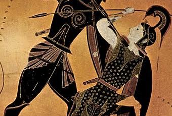 Nell'immagine: un vaso greco con la scena di Achille che uccide Ettore.