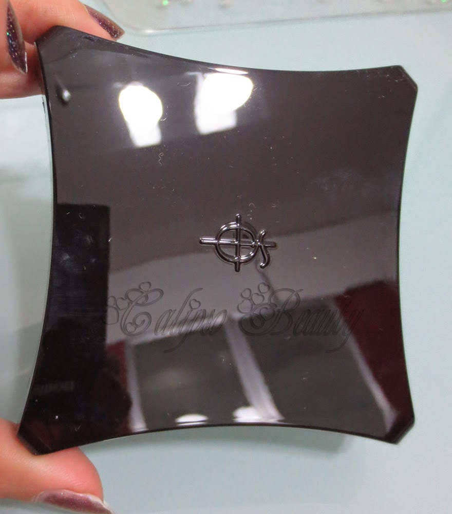 PackagingClassico del brand. Nero lucido dalla forma allungata, con il simbolo al centro. La palette possiede uno specchio all'interno di dimensioni sufficientemente grandi per i ritocchi fuori casa.