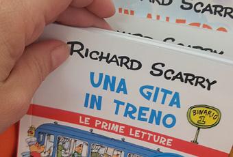 Durante la mia gita alla Libreria dei Ragazzi in attesa di fare il laboratorio creativo, mi sono fatta un giro tra gli scaffali e… potevo forse non trovare qualcosa d’interessante? E come potrebbe essere possibile in una libreria anzi, a me accade proprio il contrario: acquisterei tutto! Dopo una lunga e difficile scelta, ce l’ho fatta: ho puntato su un autore che mi piace particolarmente, Richard Scarry e devo dire che nonostante fosse il primo libro proposto ai bambini, non potevo scegliere titolo migliore: “Una gita in treno“.