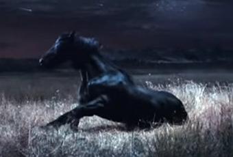 Subito dopo un’inquadratura del prodotto, spicca la sequenza con un cavallo nero che ricorda da vicino la scultura del purosangue dagli occhi fiammei, opera collocata nell’aeroporto di Denver. Lo scalo, con i suoi murales, è una vera antologia dei funesti soggetti preferiti dagli Ottenebrati.