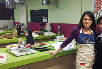 Ho sempre desiderato fare un corso di cucina: poter vedere i grandi chef realizzare piatti golosi in un baleno utilizzando gli alimenti di uso quotidiano per poi scoprirne i segreti e riportarli a casa per metterli in pratica. Nell’evento organizzato dalla Bottega di Olivia & Marino presso i locali di Congusto, non ho assistito ai trucchi dei grandi chef bensì mi sono immedesimata e mi son messa io ai fornelli. Dirvi che è stato divertente è dir poco se poi ci aggiungete la presenza di Sonia Peroncini di Giallo Zafferano che ci guardava e ci dava consigli e che alla fine ha assaggiato le nostre creazioni…