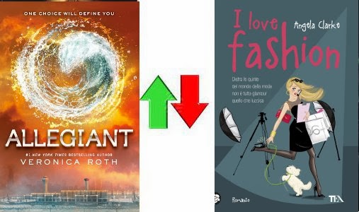 Allora, questa volta parto dall'out: cercavo un libro leggero e veloce da leggere ma, a parte la cover tanto carina, mi è sembrato un libro superficiale e una specie di brutta copia di I love Shopping della Kinsella. Per l'in ero indecisa ma alla fine ho deiso di mettere Allegiant che, pur non essendomi piaciuto da impazzire, mi ha decisamente spiazzato e ho apprezzato alcune scelte dell'autrice.