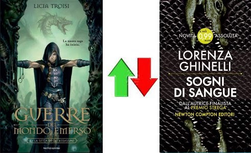 Partiamo dall'IN. Ho scelto "La setta degli assassini-Guerre del Mondo Emerso I". Devo ammettere che ero alla ricerca di una storia che mi appassionasse ma che allo stesso tempo fosse non troppo impegnativa e in questo romanzo ho trovato ciò che cercavo. Ammetto che non mi ha coinvolta allo stesso modo della prima trilogia, ma per il momento non mi lamento troppo. Come OUT ho scelto "Sogni di sangue": capisco che bisognava creare un racconto lungo (o romanzo breve), ma questo è stato troppo sbrigativo e in alcuni punti fin troppo banale. è stato il libro con cui ho inaugurato il 2014 e spero che almeno in questo caso non valga il detto: "Quando il buongiorno si vede dal mattino...".