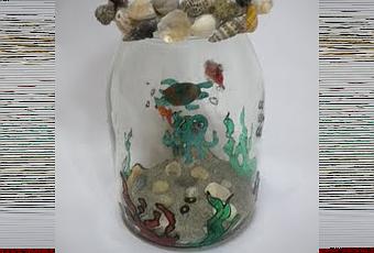 Basta un vasetto vuoto e pulito delle dimensioni desiderate, colori per il vetro (ma va bene anche della carta colorata!), sabbia, filo,colla,qualche conchiglia, filo e...fantasia!!!
