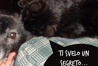 Nella foto qua sopra, sembra che Tosca parli nell'orecchio a Olivia, mentre in quella sotto invece la lecca, come fa spesso anche con noi in un modo che sembra quasi voglia prendersi cura di noi come farebbe con un suo simile, e lei si lascia fare.