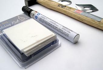 Con il martello a testa piatta o tonda (secondo i vostri gusti), martellate la vostra forma come preferite. Martellare, o comunque creare dei solchi è importante perchè proprio li andrà a depositarsi la vostra anticatura