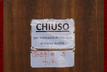 La forza della comunicazione.In questo caso un negoziante, probabilmente "a secco" di castagne, ha pensato bene di comunicare che il suo negozio rimane chiuso in quanto non intende vendere ai propri clienti castagne di bassa qualità in quanto lui, come tutti sanno, vende solo castagne di buona qualità.